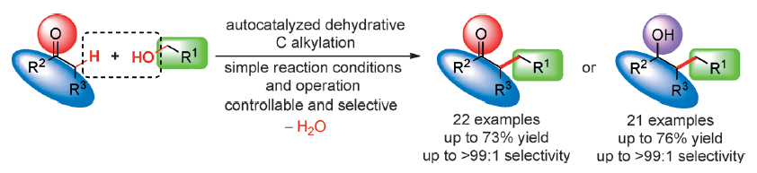 (36) Qing Xu,* Jianhui Chen, Haiwen Tian, Xueqin   Yuan, Shuangyan Li, Chongkuan Zhou, Jianping Liu. Catalyst-Free   Dehydrative α-Alkylation of Ketones with Alcohols: Green and Selective   Autocatalyzed Synthesis of Alcohols and Ketones. Angew. Chem. 2014, 126 (1), 229-233; Angew. Chem.   Int. Ed. 2014, 53 (1), 225-229 (SCI-I, IF:   13.734). DOI:10.1002/ange.201308642; DOI:10.1002/anie.201308642
