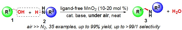 (51) Xiaochun Yu, Chuanzhi Liu, Lan Jiang, Qing   Xu.* Manganese Dioxide Catalyzed N-Alkylation of Sulfonamides   and Amines with Alcohols under Air. Org. Lett. 2011,   13 (23), 6184-6187 (SCI-II, IF: 6.364). DOI:10.1021/ol202582c