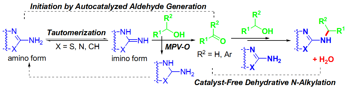 (27) Shuangyan Li, Xiaohui Li, Qiang Li,   Qiaochao Yuan, Xinkang Shi, Qing Xu.* Structure-Dependent   Tautomerization Induced Catalyst-Free Autocatalyzed N-Alkylation of   Heteroaryl Amines with Alcohols. Green Chem.   2015, 17 (6), 3260-3265 (SCI-II, IF: 8.02).   DOI:10.1039/C4GC02542C