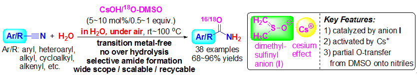 (14) Yang Li, Haonan Chen, Jianping Liu,*   Xujun Wan, and Qing Xu*, Clean Synthesis of Primary to Tertiary   Carboxamides by CsOH-Catalyzed Aminolysis of Nitriles in Water, Green   Chem. 2016, 18 (18),   4865–4870. (SCI-II, IF 8.506) DOI:   10.1039/C6GC01565D