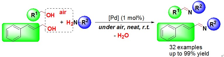(46) Haiwen Tian, Xiaochun Yu, Qiang Li,   Jianxin Wang, Qing Xu.* General,   Green, and Scalable Synthesis of Imines from Alcohols and Amines by a Mild   and Efficient Copper-Catalyzed Aerobic Oxidative Reaction in Open Air at Room   Temperature. Adv. Synth. Catal. 2012,   354 (14-15), 2671-2677 (SCI-II, IF: 5.663).   DOI:10.1002/adsc.201200574