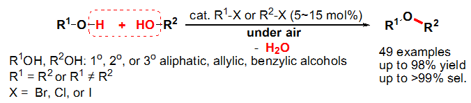 (28) Qing   Xu,* Huamei Xie,** Pingliang Chen,** Lei   Yu, Jianhui Chen, Xingen Hu* (** These authors contribute equally to this   work). Organohalides-Catalyzed Dehydrative   O-Alkylation between Alcohols: A Facile Etherification   Method for Aliphatic Ether Synthesis. Green Chem.   2015, 17 (5), 2774-2779 (SCI-II, IF: 8.02). DOI:10.1039/C5GC00284B