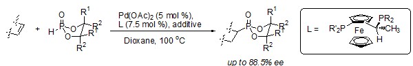 (60) Qing Xu,   Li-Biao Han.* Palladium-Catalyzed Asymmetric   Hydrophosphorylation of Norbornenes. Org.   Lett. 2006,   8 (10), 2099-2101 (SCI-II, IF: 6.364). DOI:10.1021/ol060568y