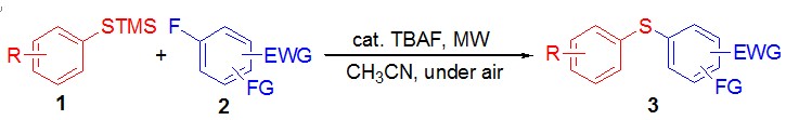 (55) Chuanzhi Liu, Xufeng Zang, Baohua Yu,   Xiaochun Yu,* Qing Xu.* Microwave-Promoted   TBAF-Catalyzed SNAr Reaction of Aryl Fluorides and ArSTMS: an   Efficient Synthesis of Unsymmetrical Diaryl Thioethers. Synlett,   2011, (8),   1143-1148 (SCI-III, IF: 2.655). DOI:10.1055/s-0030-1259959