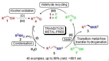 Cited and commented by Science-2013-339-43 as an exceptionally   good method for imine preparation from alcohols and amines)