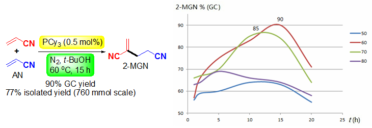 (33) Lei   Yu,* Jun Wang, Xu Zhang, Hongen Cao, Genling Wang, Kehong Ding, Qing   Xu*, Mark Lautens. Practical preparation   of 2-methyleneglutaronitrile via an efficient and highly selective   head-to-tail dimerization of acrylonitrile catalyzed by low-loading   tricyclohexylphosphine. RSC Adv.   2014,   4 (37), 19122-19126 (SCI-III, IF: 3.84). DOI:10.1039/C4RA02810D