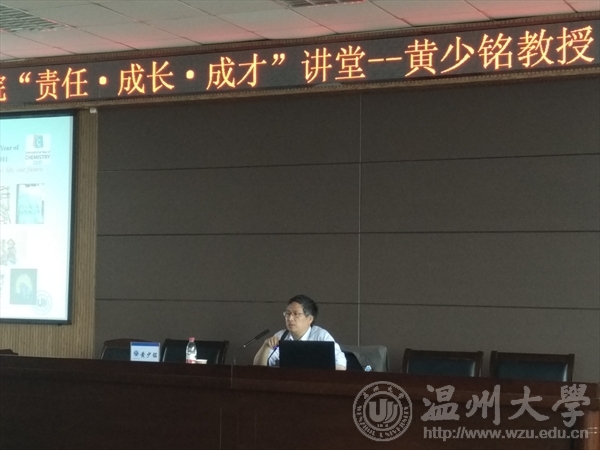 4月27日下午,黄少铭副校长为全院学生做《化学,人生与梦想》主题讲座,讲座作为我院《责任·成长·成才》讲堂系列讲座之一。