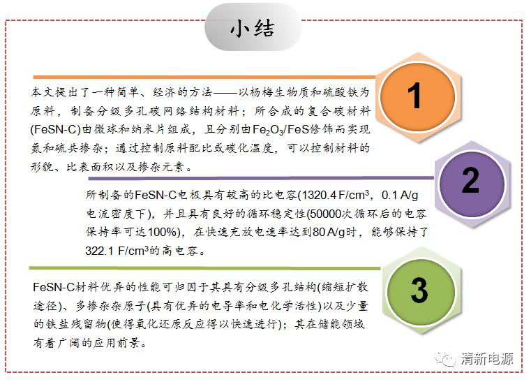 近期,日本a片 金辉乐高级实验师、王舜教授、美国阿尔贡国家实验室陆俊研究员以及温莎大学Jichang Wang教授(共同通讯)在Advanced Energy Materials期刊上上发表文章。文章报道了一种简单制备Fe2O3/FeS修饰N,S-共掺杂层状多孔碳材料的方法,通过调控杨梅与硫酸铁之间的水热反应,可以控制其微观结构及组成;该反应制备的碳材料组装而成的超级电容器具有极快的充放电速率(5万次,80 A/g电流密度下)、超高的体积电容(1320.4 F/cm3,0.1 A/g)以及高的能量密度(100.9 Wh/kg,221.9 Wh/L)。