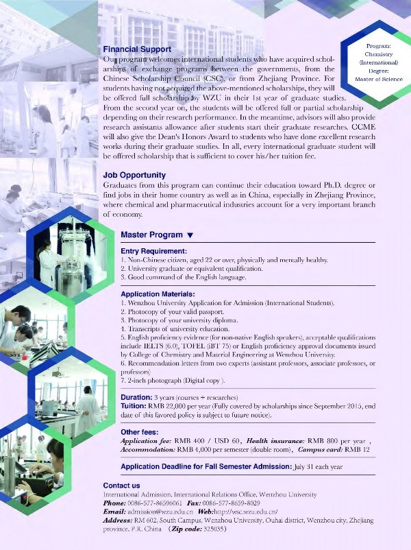 Wenzhou University speacial programs for international students-温州大学化学与材料工程学� <#webadvjs#>