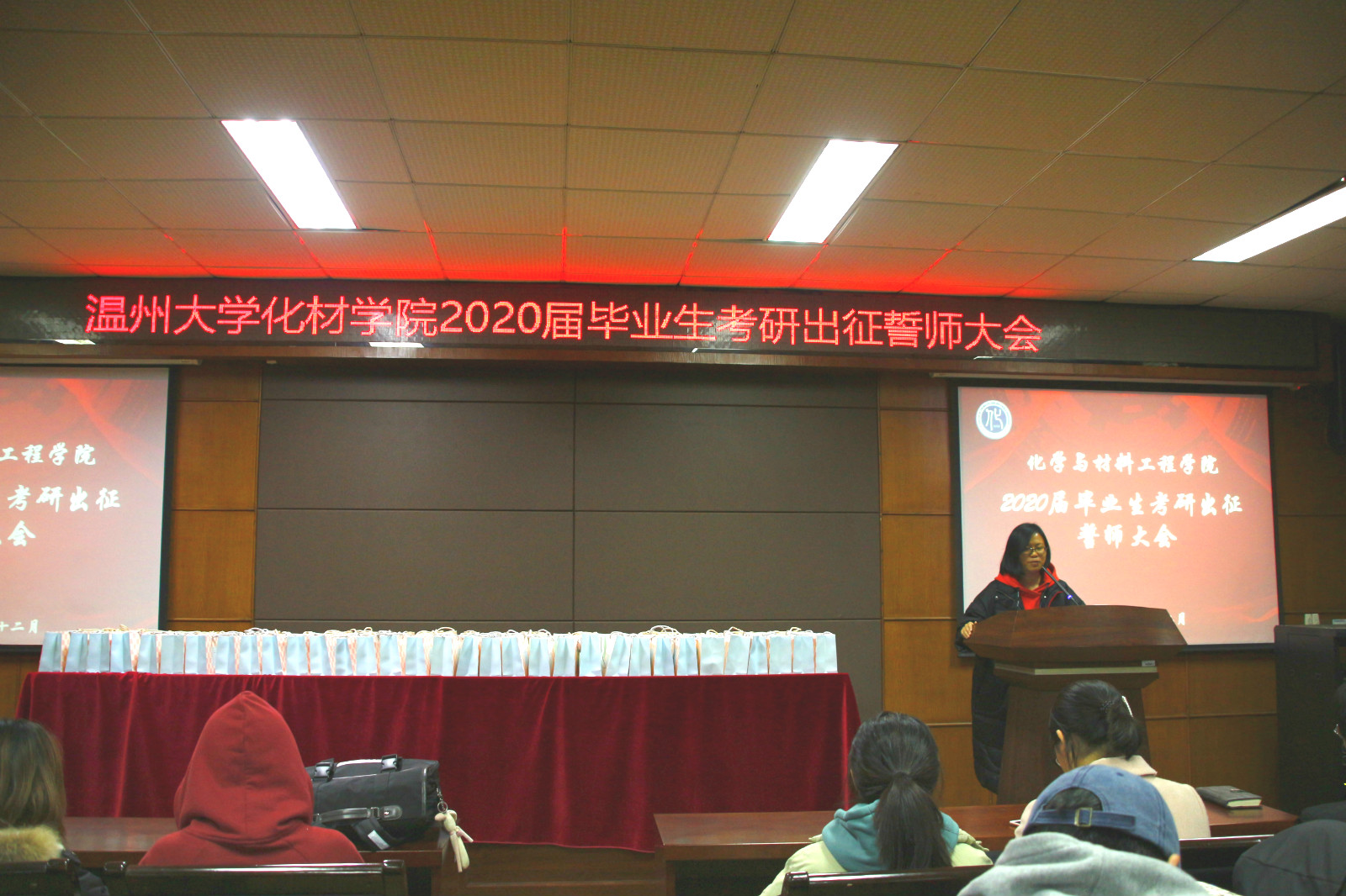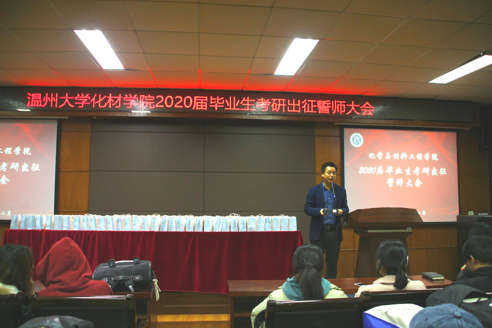 2019年12月20日下午,化材学院2020届毕业生考研出征誓师大会在208会议室举行。王舜院长、熊琳书记、周敬业书记、2016级班主任、任课老师以及全体2020届考研学生参加本次誓师大会 。