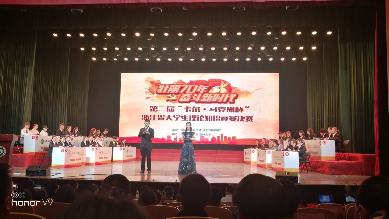 承办的第二届“卡尔·马克思杯”浙江省大学生理论知识竞赛,在浙江工商大学圆满落幕。本次大赛以“壮丽七十年,奋斗新时代”为主题,旨在深入贯彻习近平总书记在学校思想政治理论课教师座谈会上的重要讲话精神,积极学习贯彻十九届四中全会精神和省委十四届六次全会精神。