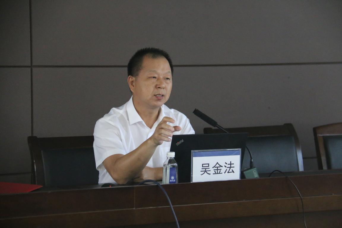 吴金法书记以国庆70周年群众游行“从严治党”主题彩车为切入点,对全面从严治党的“一个判断、两个责任、三不机制、四种形态、五个过硬、六项纪律、七大趋势”做了全面的讲解。吴金法书记指出,全面从严治党是“四个全面”战略布局中的重要组成部分,全面从严治党是实现全面建成小康社会这个战略目标的政治保证。吴书记对“全面从严治党,核心是加强党的领导,基础在全面,关键在严,要害在治”作了详细的解读,号召我们要坚持党对一切工作的领导,落实两个责任,在“全面、严治”上下功夫,牢牢把握“永远在路上”的过程性特点,把我们的党建设得更加坚强有力。最后,吴金法书记要求我们党员、领导干部要守纪律、讲规矩、做表率,要坚持作风建设永远在路上、反腐败斗争永远在路上、全面从严治党永远在路上,积极践行新时代好干部标准。