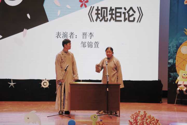 第二篇章“二氧化‘萌’”。17化类3班的晋李同学与邹锦萱同学一起为大家带来了相声——《规矩论》,妙语连珠让现场的观众乐开怀。我院研究生带来一首《从11路到11B的日子》,表达了研究生生活的切实感受。17化本1班的六位同学带来的舞蹈《bang bang bang》,让现场观众热血沸腾。