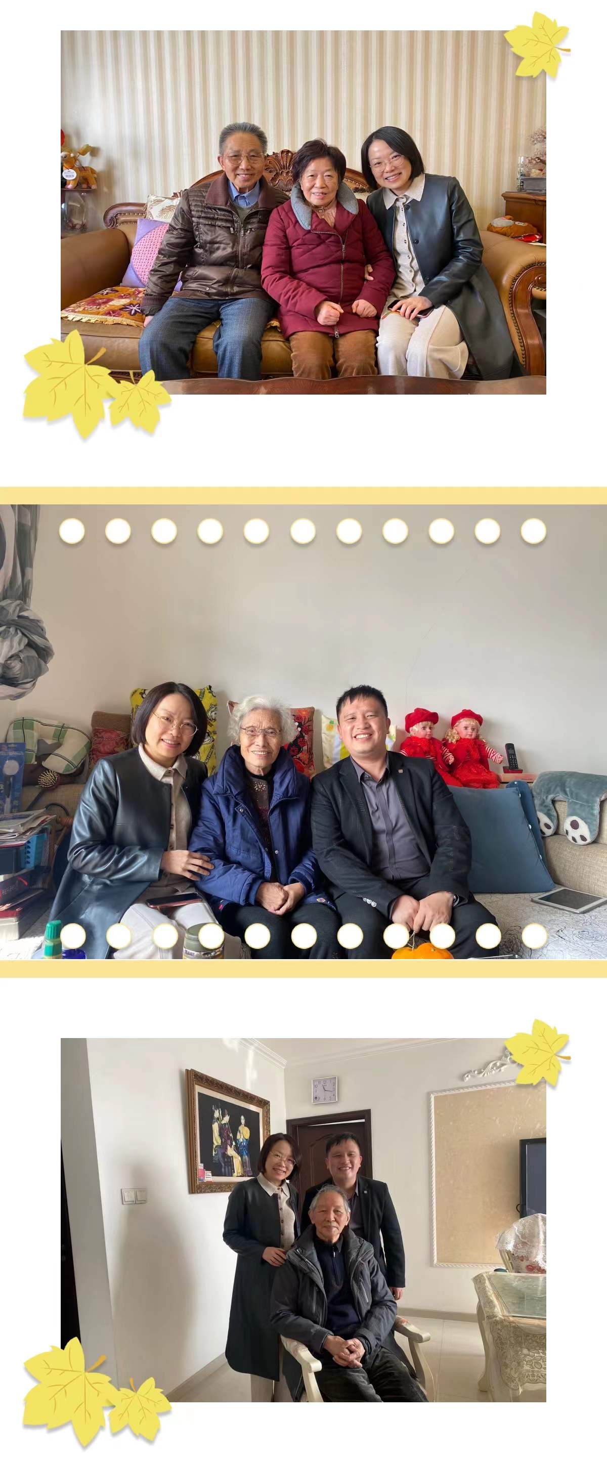 化材学院开展了一年一度慰问退休老教师的暖心活动。2022年1月14日和19日两天,化材学院党委书记刘吟老师、院长杨植老师、副院长兼工会主席陈锡安老师、副院长金辉乐老师、党委副书记周敬业老师、院长助理王兆伦老师、工会副主席胡悦老师及工会委员分5组以家访、电话形式慰问了32位退休老教师。