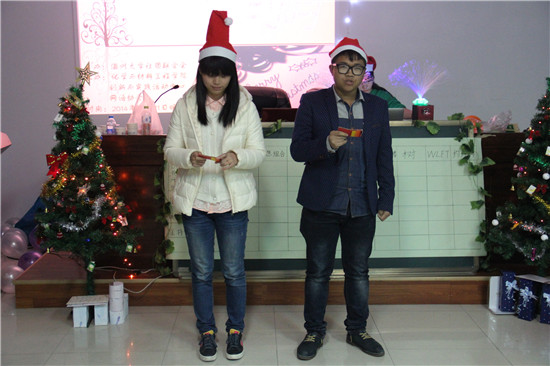 2014年12月21日6:30,圣诞夜的歌声在化材学院11C-208飘荡开来,炫彩的灯光,精心的布置都氤氲着圣诞的气氛。这是化材学院网络协会举办的名为“圣诞夜,约么”的主题活动。学生会创新实践中心干事张专和吴丹丹担任活动主持人。本次活动聚集了60多位同学,同时网络协会前会长李姝婉学姐,前副会长李若男学姐以及学生会副主席周基政学长也受邀参加。