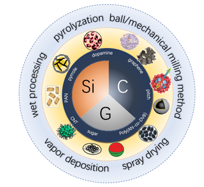 The co‐utilization of Si and graphite has emerged as the most practical anode for high‐energy lithium‐ion batteries, but there are still significant challenges. The carbon additives play important roles in integrating the Si and graphite with tailored structure, morphology, and surface, and are discussed along with the synthesis methods and strategies to provide insights for further development and commercialization of Silicon/Graphite/Carbon (Si/G/C) anodes in the future.