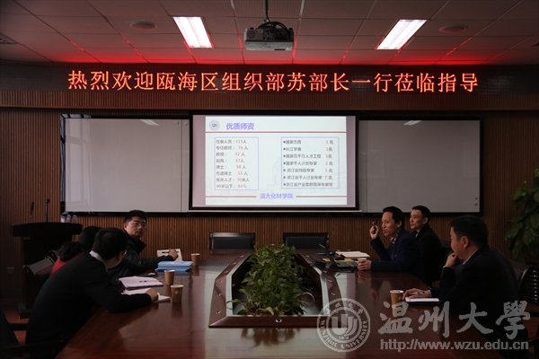 3月3日上午,瓯海区委组织部副部长苏海鸥一行莅临学院交流,学院院长王舜及相关教师出席交流会。 会上,王舜院长就学院学科平台、优势师资、高层次人才、学术水平、专业建设、教学建设进行了简要介绍,并重点就学院特色研究以及孵化项目进行了说明。王舜院长表示希望新材料与产业技术研究院能够得到区委组织部的指导与支持,并合作建立大型仪器共享平台,构建政、产、学、研、用、基六位一体的合作平台。