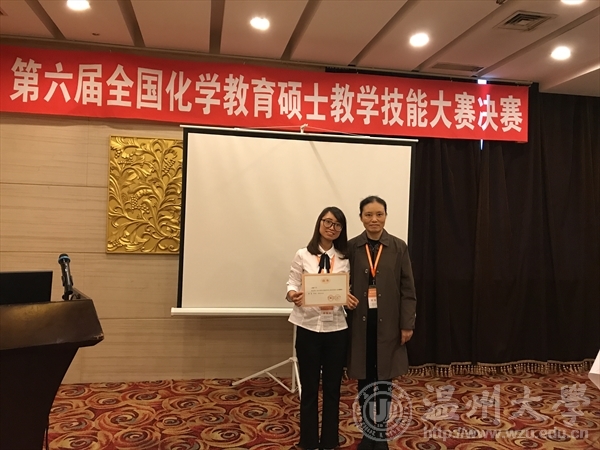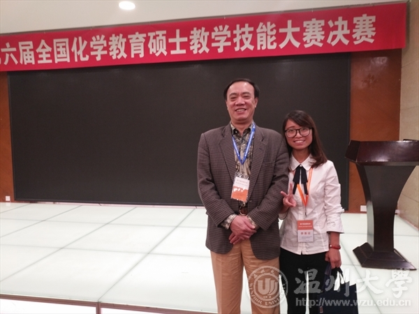 我院研究生王翻在其导师陈迪妹老师的悉心指导下,经过一个多月的刻苦训练,比赛场上沉着应对,表现优秀,一举夺得一等奖。赛后与中国教育学会化学教学专业委员会副理事长,中国化学会化学教育委员会委员,东北师范大学郑长龙教授合影留念。