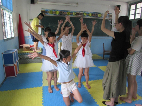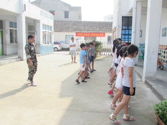 今天一早,“温心”实践队队员们又准时到达了丽岙三小,开始了一天的教学活动。早上8:20,同学们正在军训,会议室里却出现了几张陌生的面孔。“文化旅人”暑期社会实践队的到来让同学们和“温心”全体队员格外兴奋。军训结束后,孩子们被分为两批进行教学。一批由“温心”带领着接受多彩温州、趣味英语、奥秘生物等有趣的课程;另一批由“文化旅人”带领接受唱歌、朗诵、和跳舞的培训。两批学生对两个队的内容都表现出浓厚的兴趣。