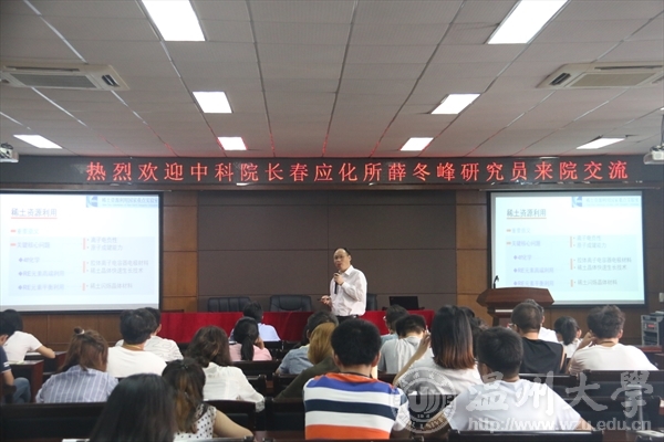 薛冬峰研究员为学院师生做了一场题为“功能材料组成、结构及性能”的学术报告,报告从稀土化学与物理的60年发展历程引入,介绍了稀土资源利用国家重点实验室的研究方向、人才队伍、国际交流以及科研方面所取得的突出成果。着重探讨了凝聚态材料的存在形态和结晶过程,分别论述了晶体和非晶体在成核和生长过程中的变化,揭示了元素电负性的科学本质。