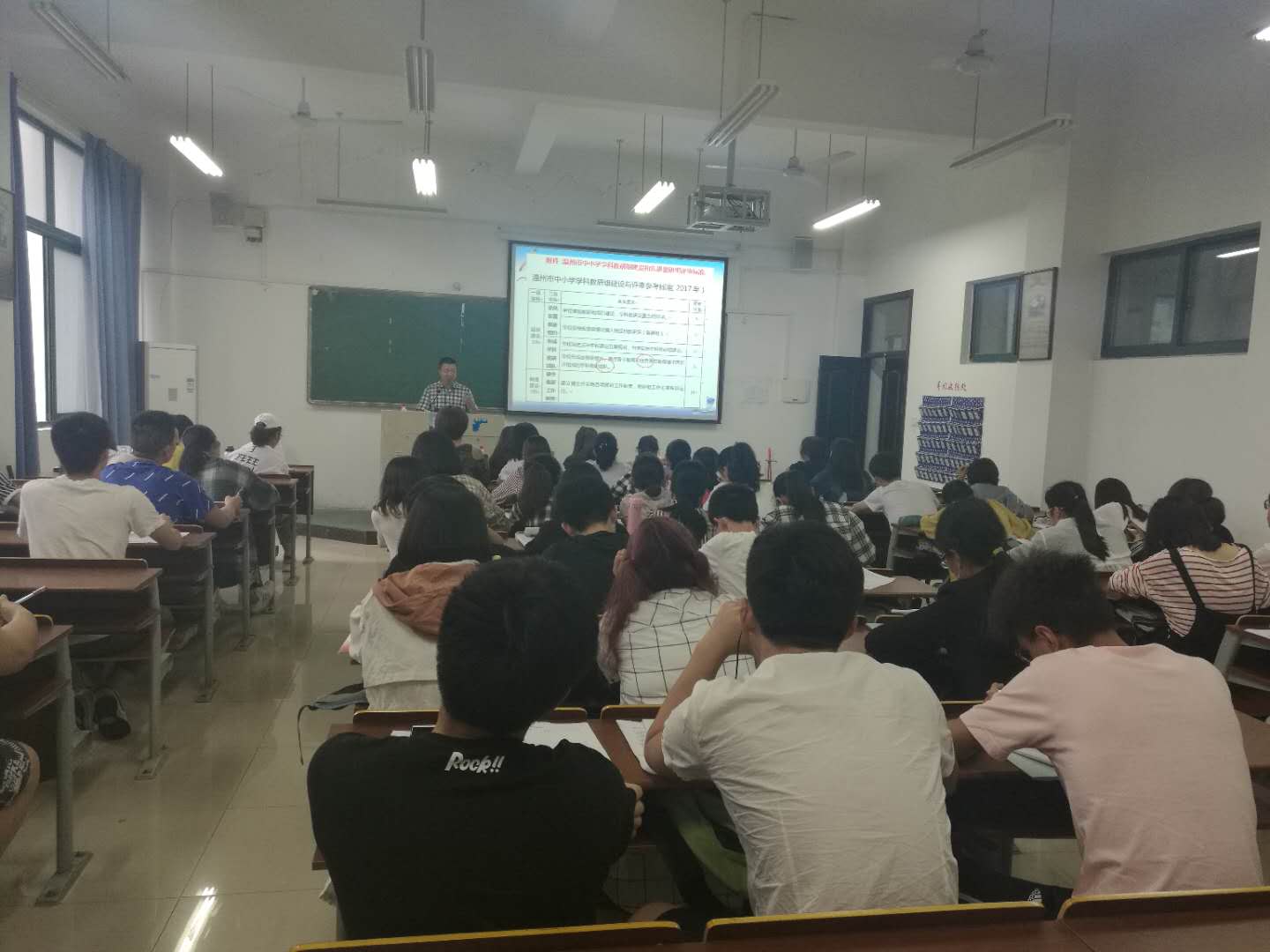16化学师范的同学做了一堂关于《新课改背景下的师范生专业发展》的讲座。