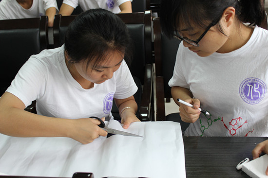 绿袖子暑期实践队于南校区11B-208会议室开展全队合作手工制作活动,历时一整天,为接下来的进社区活动提供了完善的手工物品支持。