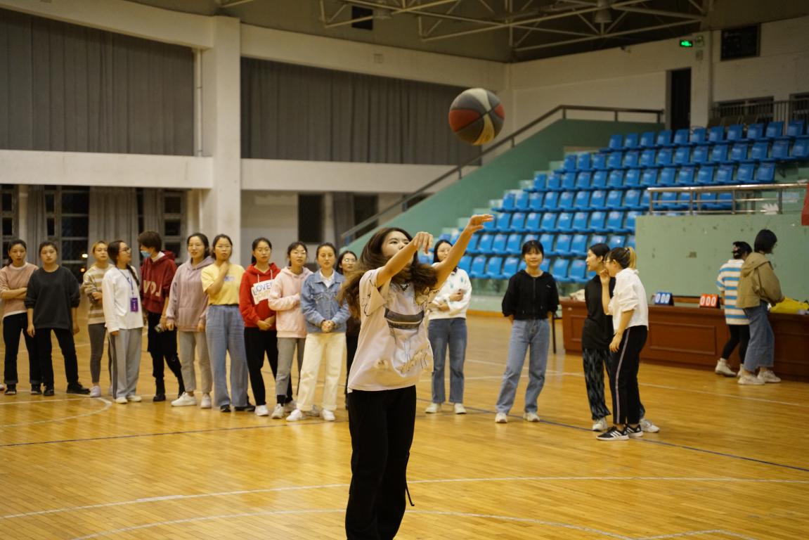 首先进行的是女子投篮比赛。女子投篮以小组参赛,各年级为一组,每名队员在罚球线外投蓝5次,累计计算每组总投篮数和个人投篮数。经过激烈角逐,最终决出胜负。