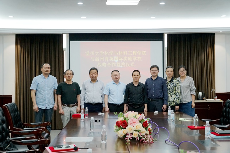 4月23日下午,我院和温州育英国际实验学校的战略合作协议签署仪式在育英行政楼三楼会议室隆重举行,温州育英国际实验学校执行校长叶盛富、办公室主任周翔、高中分校校长林永德,我院院长王舜、党委书记方乐平、化学系主任夏远志、王稼国教授、陈迪妹教授、张卫兵老师等出席仪式。
