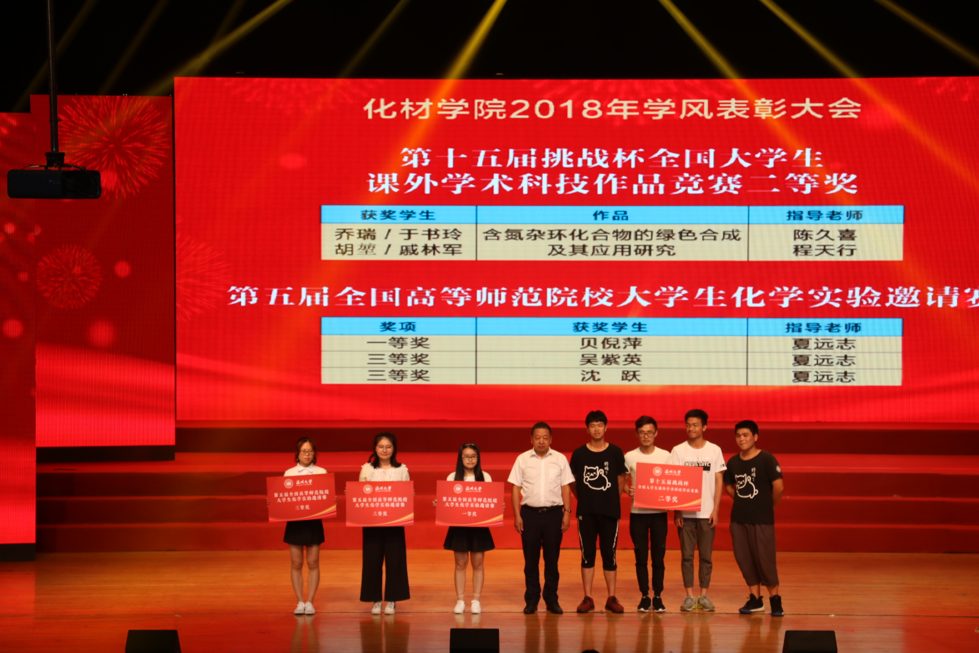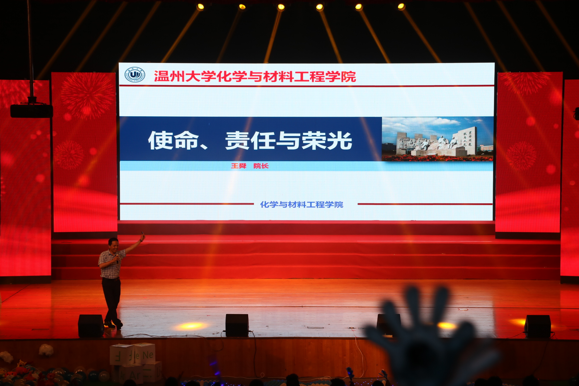表彰大会会议伊始,王舜院长做了精彩的讲话,他介绍了学院学科与平台建设、专业建设与人才培养工作的发展,勉励在座的即将毕业以及在校的同学珍惜时间,练强本领,努力成为一个对社会有用的人,为化材争光。