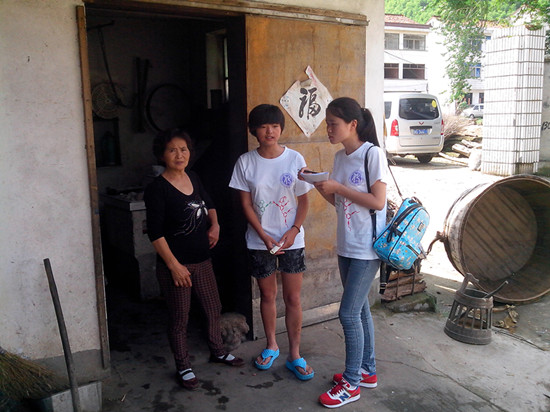 “薪火”实践队在塔石中心小学进行了第二天实践。上午是小朋友与全体队员的见面会,主要是互相熟悉,并且每个队员都分到了若干个小朋友,负责他们以后的接送工作。下午则是各个队员到小朋友家里进行家访,了解他们的生活、学习情况,以便以后更好地进行实践活动。