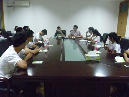 首先由实践队队长对实践队概况做了简单介绍。接着宣教处负责人就队员们提出的一些问题进行了回答。主要针对政府在五水共治方针下所做的努力,现今五水共治方针取得的成效,以及违规排放污水的监管流程。从中,队员们了解到垃圾河已基本整治完毕,黑臭河的整治是一个长期的过程,政府正有计划的跟进,为此也投入了大量的资金。环保局也在不断加大环境执法,加大社团、民间环保力量的动员,提高民众的参与度。负责人还向队员们介绍了许多民间环保组织,例如瑞安塘下环保组织,绿色水网,绿眼睛等,对于队员们先觉的环保意识也给予了充分肯定。他强调大学生应更多的起到监督作用,拨打投诉电话,向河长询问河流整治情况,利用新媒体进行反映等都是一些有效的监督措施。在了解到队员们将下社区进行五水共治知识的宣传,负责人也就如何更好的进行宣传给予了建议,并赠与队员们环保手册,环保袋,扇子,卷尺等用作宣传奖品的物资进行支持。