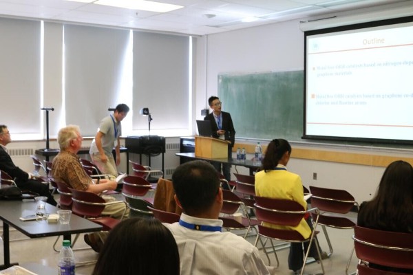 王舜教授带领5位青年教师应邀参加了在加拿大哥伦比亚大学举行的第二届国际电化学能源科学与技术会议,并做了题为“Novel-structured Nanomaterials for Fuel Cell”的邀请报告。会议期间,学院邹超博士、杨克勤博士、林大杰博士、陈锡安博士以及金辉乐高级实验师也分别就自身在太阳能电池、燃料电池、锂硫电池等领域所取得最新研究结果在分会场上做专题报告。此次会议交流,不仅提升了日本a片