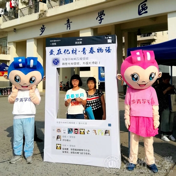 对于化材学院这次迎新工作,校领导、院领导都高度重视。迎新生期间,校党委书记林娟娟、校党委副书记赵敏先后到我院迎新现场看望迎新工作人员,检查迎新接待情况,希望能给新生及其家长提供热情、周到、细致、贴心的优质服务,并对我院在现场报道点为新生们定制的合影相框服务表示了肯定。新生们可以挑选“春风十锂,化材等你”等带有化学元素的祝福语与家长一起合影寄语大学生活!