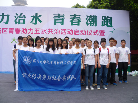 “诺亚绿舟”暑期实践队全体成员参加了由温州市共青团鹿城区委员会主办的以“助力治水,青春潮跑”为主题的五水共治活动启动仪式暨大学生暑期社会实践出征仪式及五水共治快闪活动。