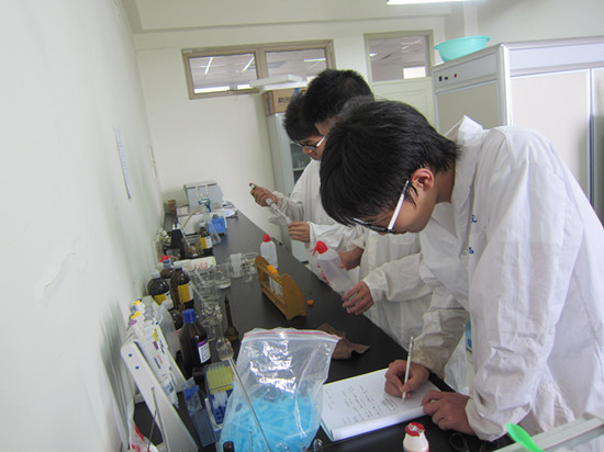 “绿袖子”实践队在3C-404进行了对“牛奶中增塑剂含量的测定”的分析实验。
