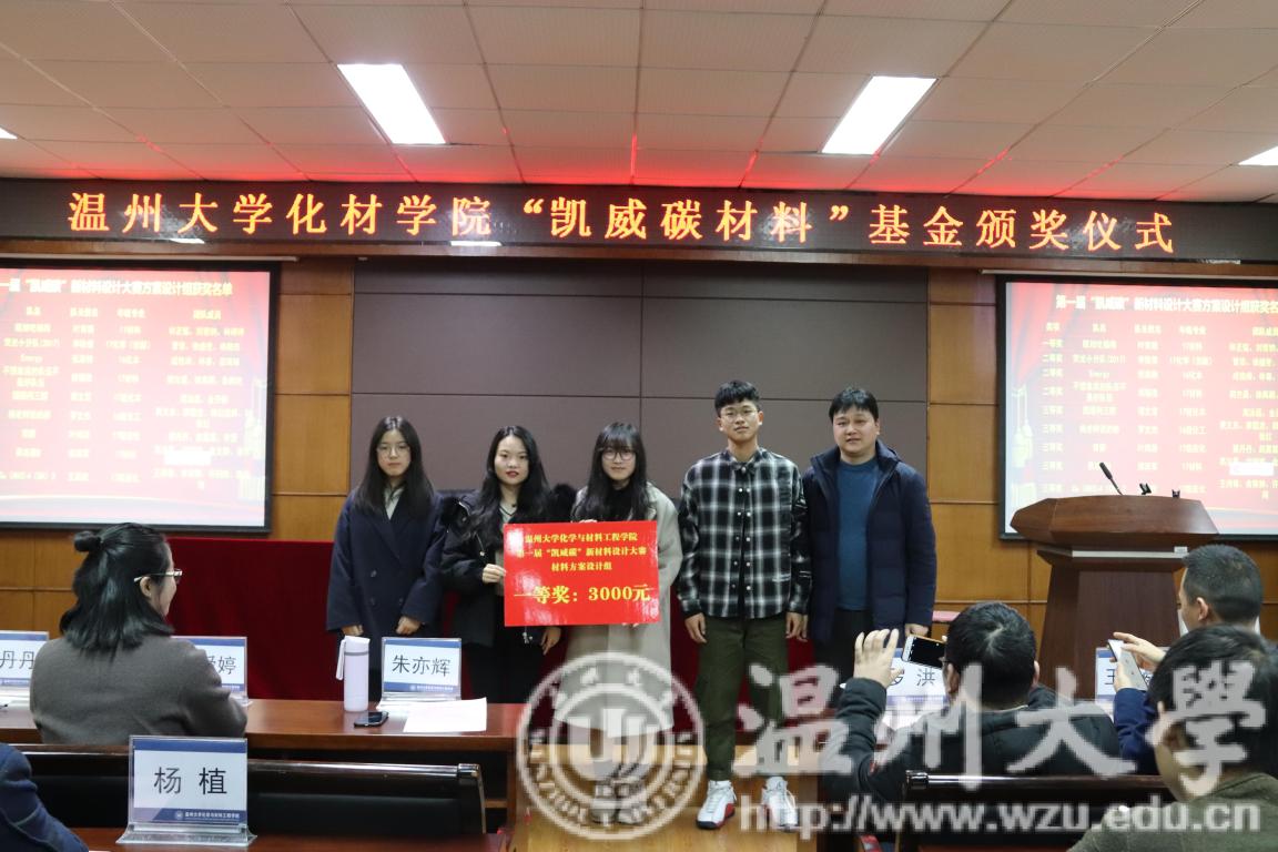 据悉,本年度“凯威碳”基金颁奖仪式材料知识组、方案设计组各有九个团队获奖,“凯威碳励志奖”共评选出20名同学获奖。希望我院学子在“凯威碳”基金的激励下不忘初心,砥砺前行,共同为我院材料科学与工程专业发展做出贡献。