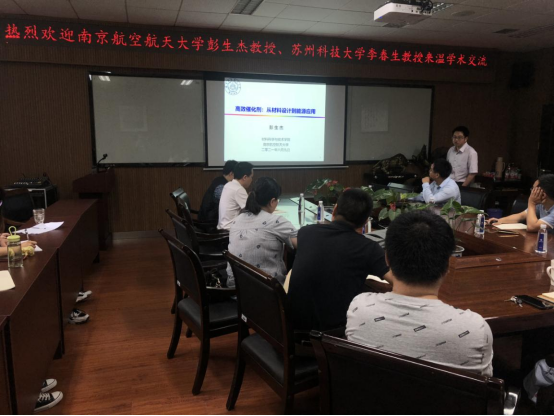 ,在11B-204作了题为“高效催化剂:从材料设计到能源应用”的讲座。报告由化材学院陈锡安副院长主持,王舜院长以及各位青年老师、研究生到会参加。化材学院陈锡安副院长对彭生杰教授的到来表示热烈欢迎,并向师生介绍了彭生杰教授的基本情况。