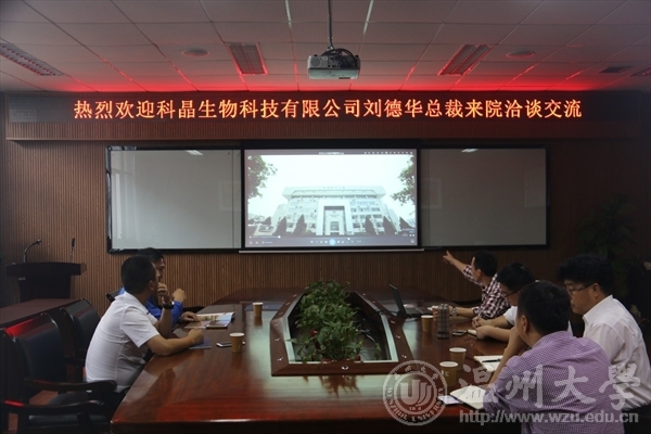6月18日上午,科晶生物科技有限公司总裁刘德华一行来院交流、洽谈合作,院长王舜、副院长张兴国及相关教师出席了本次会议。