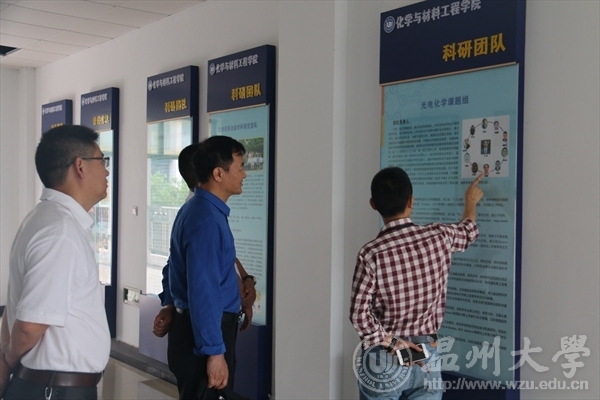 王舜院长对刘总裁一行的到来表示热烈的欢迎,并携学院教师代表带领叶总裁一行参观了学院宣传栏,对学院的各方面建设一一作了介绍。