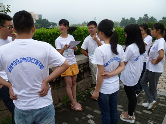 生命与环境科学工程学院旁的空地上可以看到这样一群朝气蓬勃、精神焕发的少年们在那里接受素拓培训,不时传来阵阵欢声笑语……以“破冰之旅”为主题的培训内容丰富多彩,形式多样,从第一环节的组队,互相介绍,制作属于本队的特色队名、对歌、队徽以及最后的整体成果展示,到第二环节“两人三足”以及最后的“你写我猜”,大家都兴致勃勃,意趣盎然。通过此次培训,各成员发掘了自身潜能,增强了自信心,克服了心理懒惰,认识了群体的作用,提升了团队活力,通过真诚的交流融洽地与团队合作。