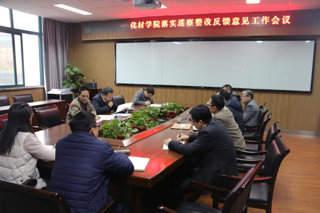党委巡察组向化材学院党总支反馈巡察工作情况会议之后,化材学院立即召开巡察整改反馈意见工作布置会议,就巡察整改意见进行布置。会议由党总支书记方乐平主持,学院领导班子成员、各系主任及总支委员参加了会议。