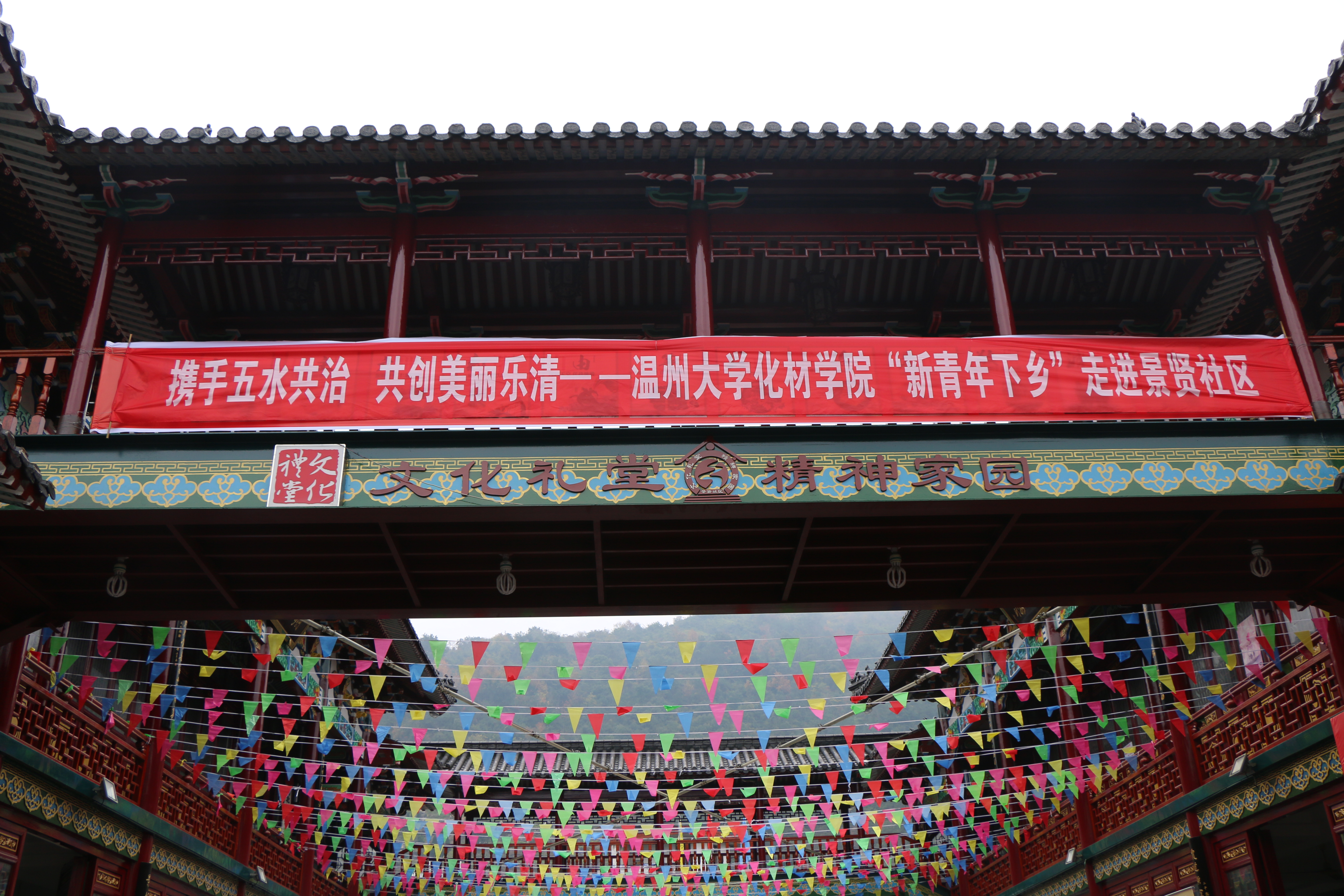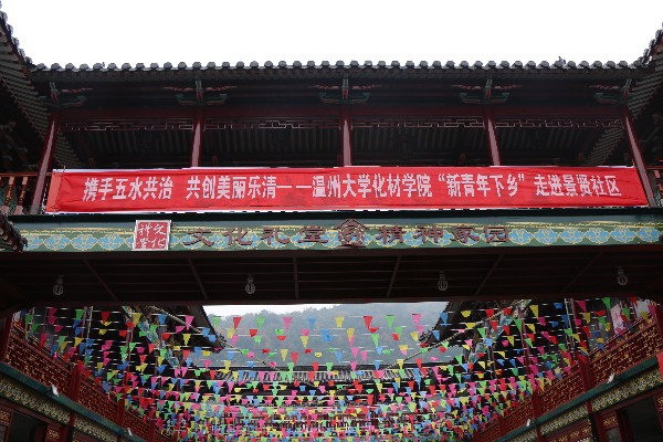 师生一行人来到了乐清乐成街道景贤社区开展“新青年下乡,助力五水共治”活动。