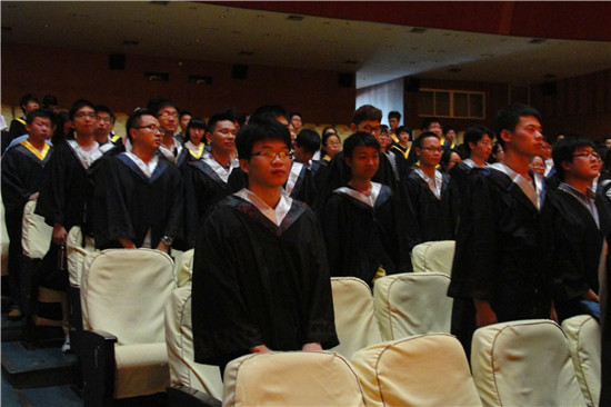 于大学生活动中心的育英大礼堂举行了2014届毕业典礼。出席本次典礼的有化材学院院长王舜、党总支书记程亚倩、副院长叶明德、党总支副书记孙安梭、化材校友代表丁泓友、张贤策、兰一辉,院长助理陈久喜、马德琨。化材学院10级全体毕业生参加此次典礼。