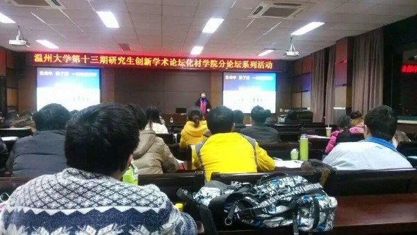 第十三期研究生创新学术论坛-化材学院分论坛活动在11B-208室隆重举行,“幸福力讲师”张海音副教授为化材学院全体研究生做了一场精彩的积极心理学专题讲座。