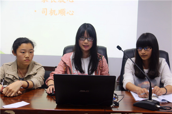 在各队派代表抽签之后,暑期社会实践二轮答辩正式开始。首先,主持人介绍各支社会实践队伍,并邀请各支队伍上台展示,展示者用ppt的形式向大家介绍各队实践策划主要内容,实践亮点。评委们则在认真听取各队策划之后,开始针对该实践队的策划情况进行点评,询问实践队的准备情况,指出策划的不足之处和注意情况,并给予改进的方法和意见。