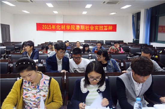 2015年4月22日晚上18:00,化材学院举办了2015年暑期社会实践策划二轮答辩,本次答辩在化材学院11号楼11B208举行。本次评委由温心暑期科普夏令营实践队负责人施邢飞、化材学院团委学生会实践部前部长康鹏飞、化材学院团委学生会主席李慧静担任。