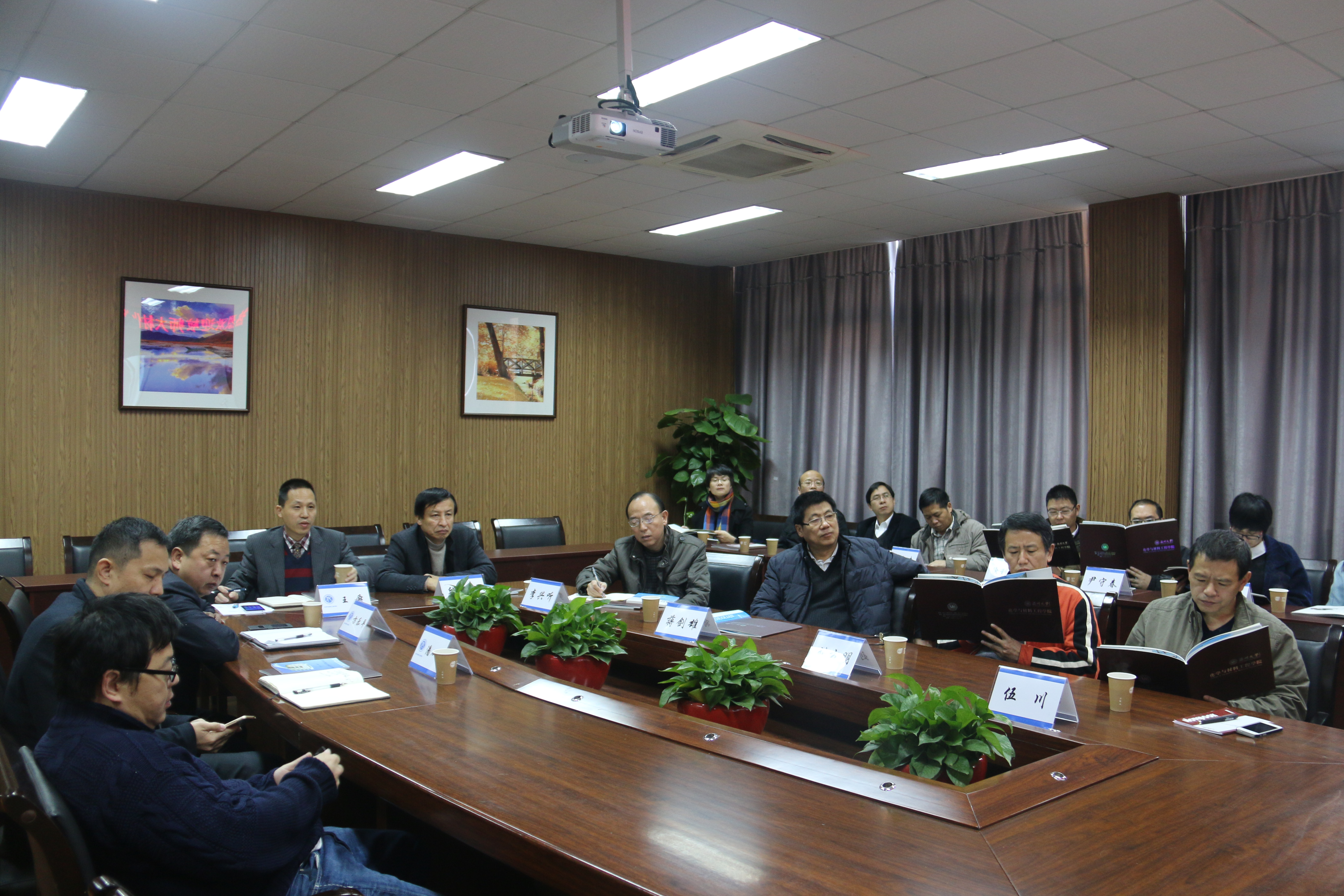 邱化玉院长简要介绍了材化学院的概况,调研的目的和主要内容。王舜院长就学院师资、学科建设、人才培养、平台管理等方面情况业做了一一介绍。调研会上,两校教师就感兴趣的共同话题展开积极讨论,气氛非常热烈。会上,大家都希望能加强两校青年教师的交流与合作,计划每年轮流举办青年教师论坛,促进共同成长。