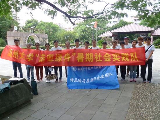 “诺亚绿舟”暑期社会实践队的队员们第二次来到了温州南浦街道清风社区进行环保宣传。