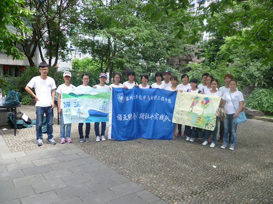 “诺亚绿舟”暑期社会实践队的队员们来到了温州市南浦街道清风社区向温州市民们普及五水共治知识。