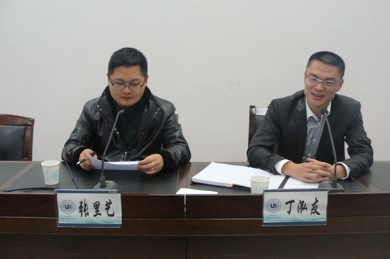 于11D-401举行第一期学长讲坛。化材学院优秀校友——99级工业分析专业、毕业后自主创建温州金诺企业管理培训有限公司的丁泓友学长和02级材料、毕业后自主创建企业的张里艺学长担任此次讲坛的主讲人。化材学院学生科辅导员林萍老师出席了此次讲坛。13级全体同学以及部分11、12级同学参加了此次讲坛。